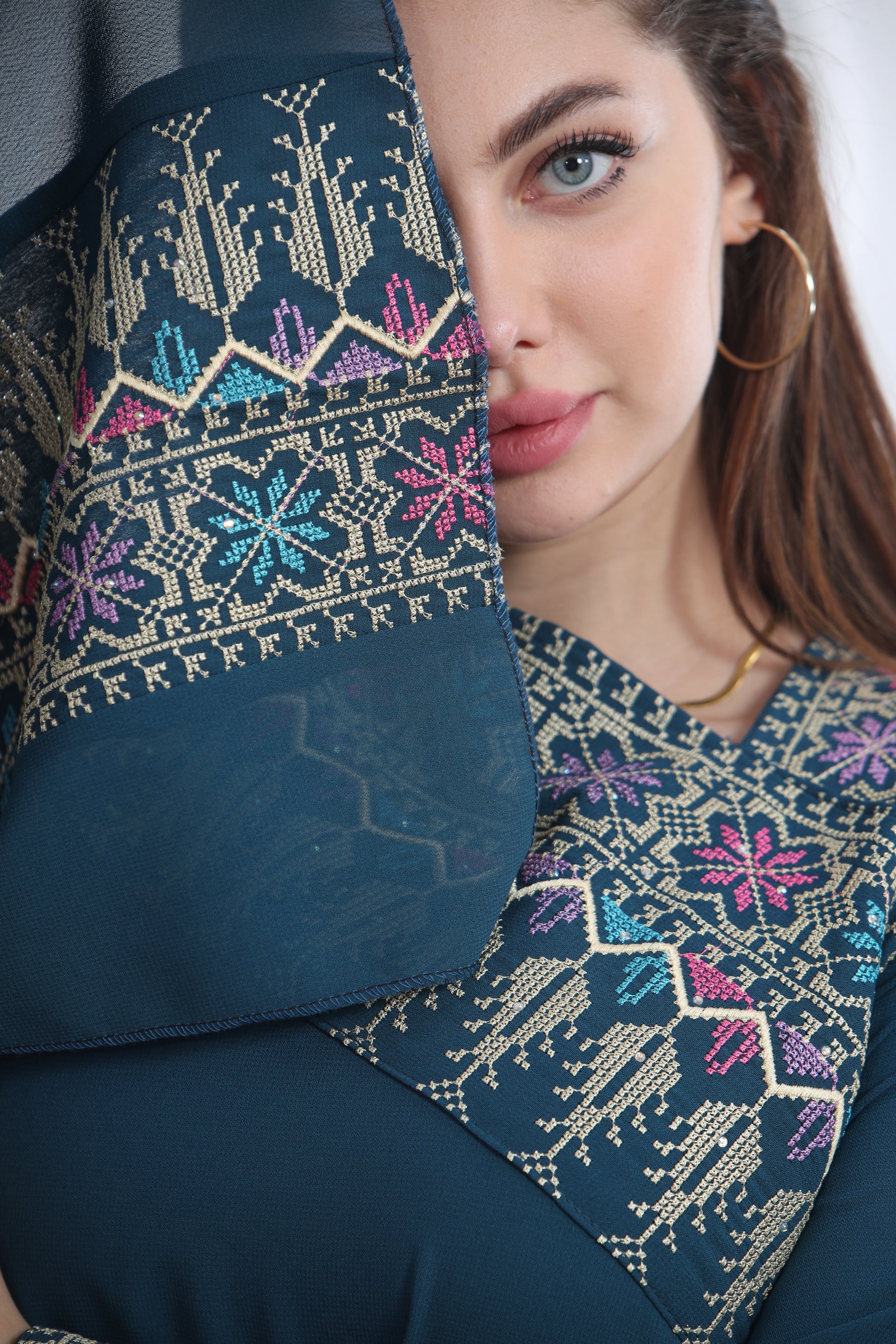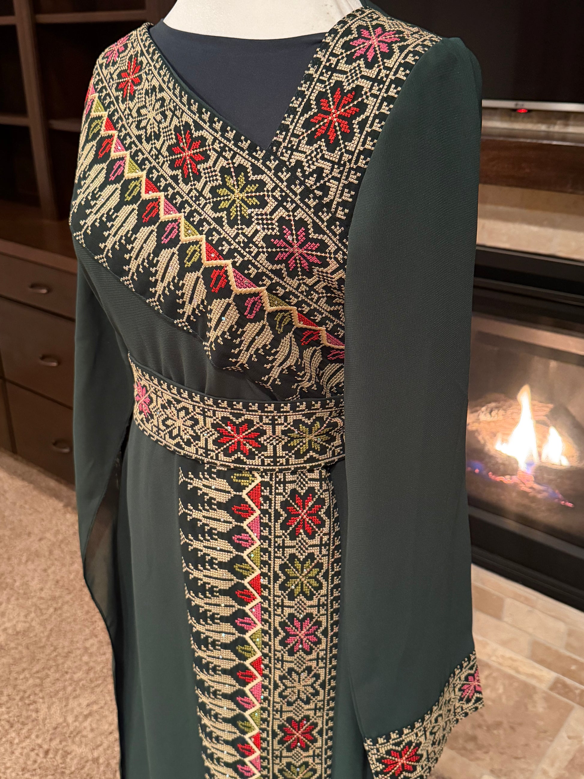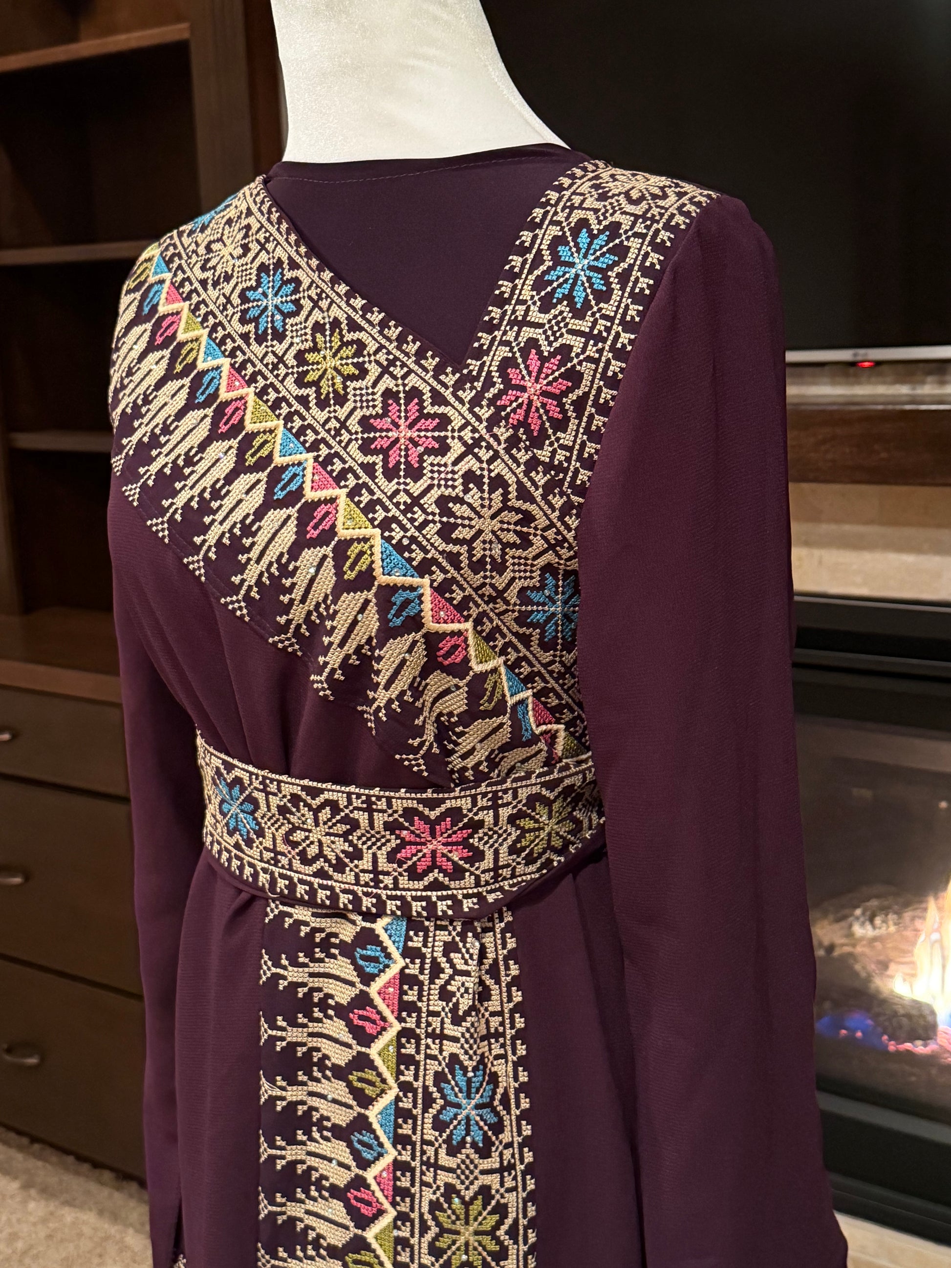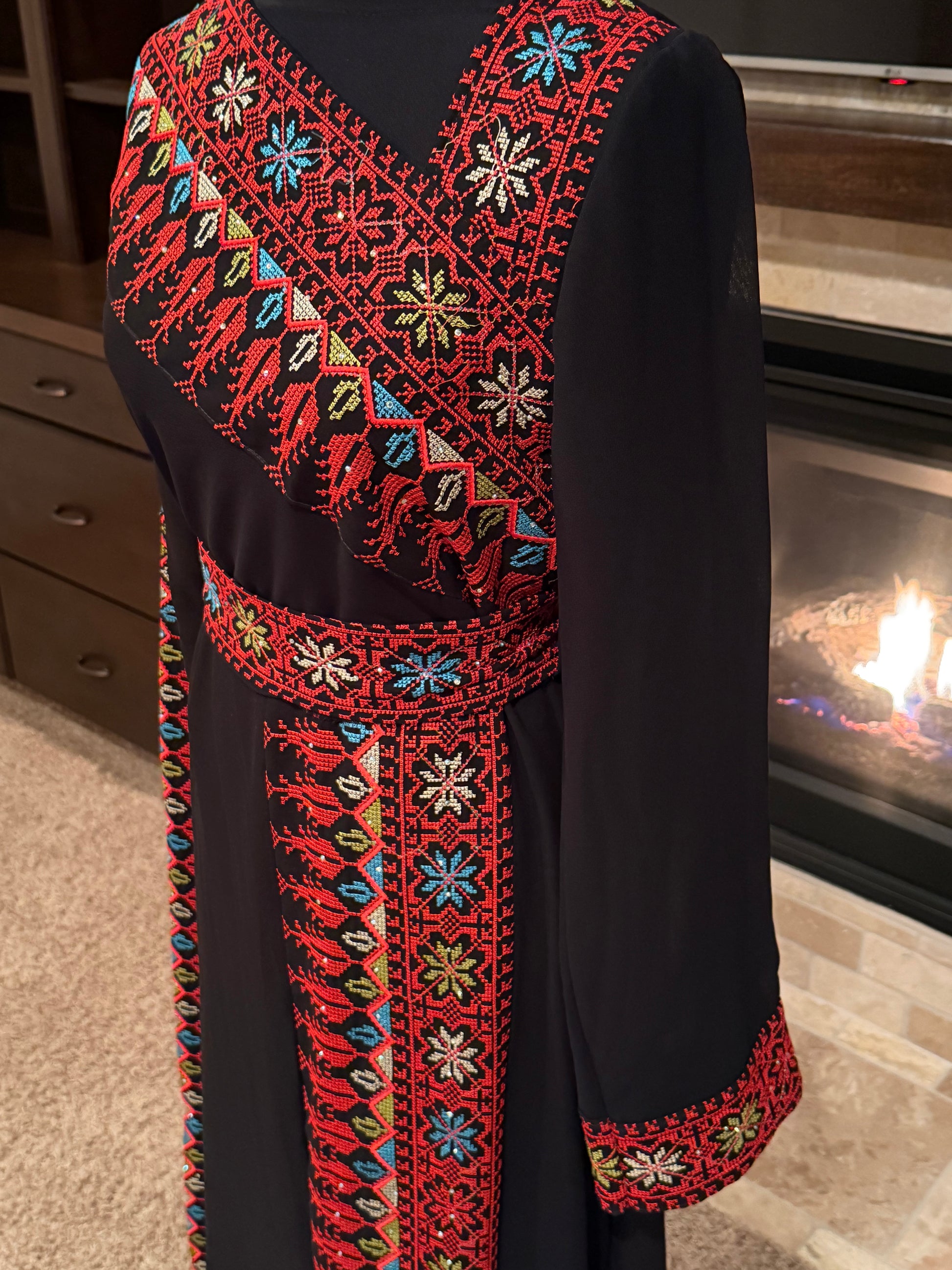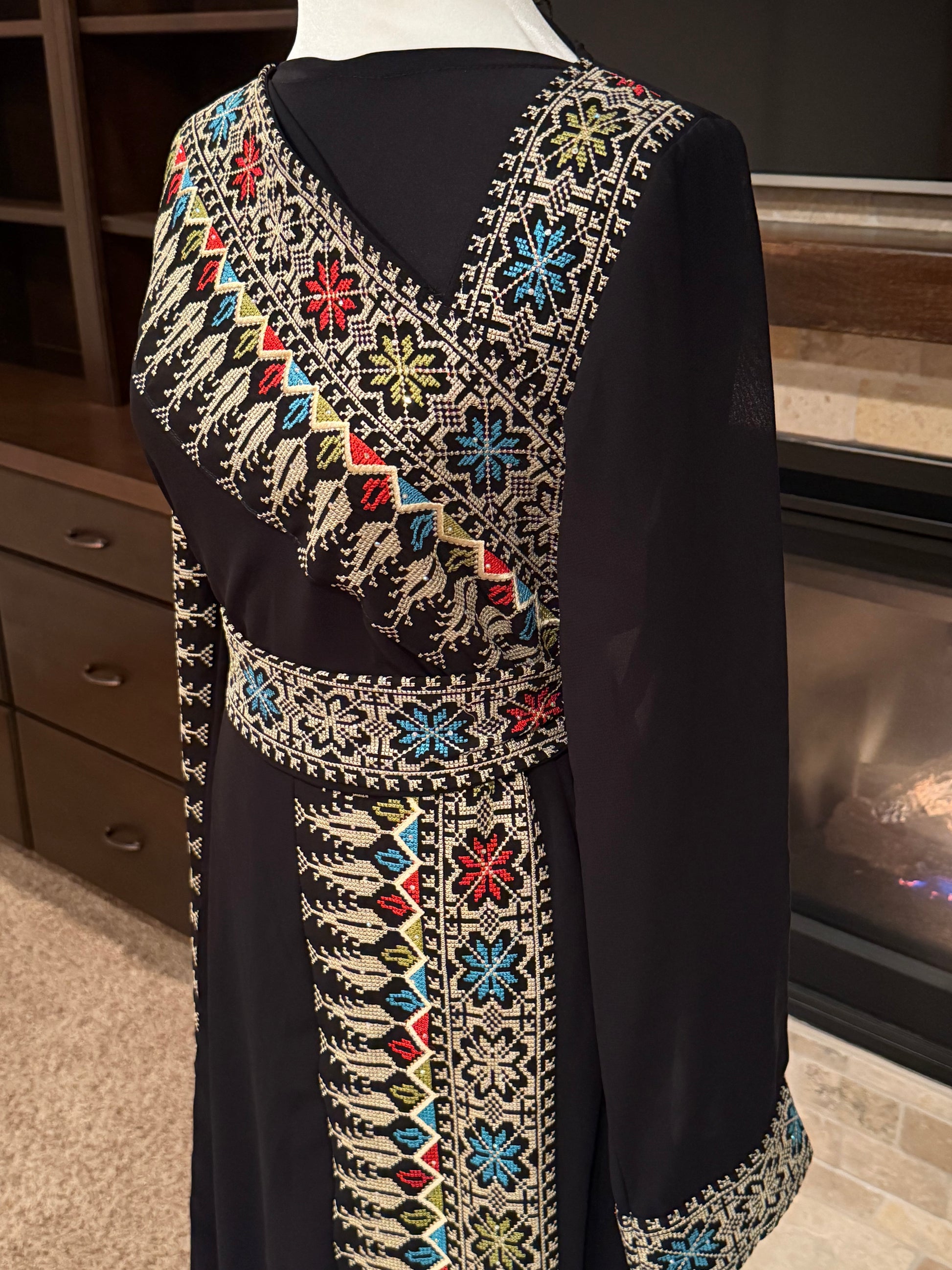 - Detailed embroidery on chest, sleeves, and front panel