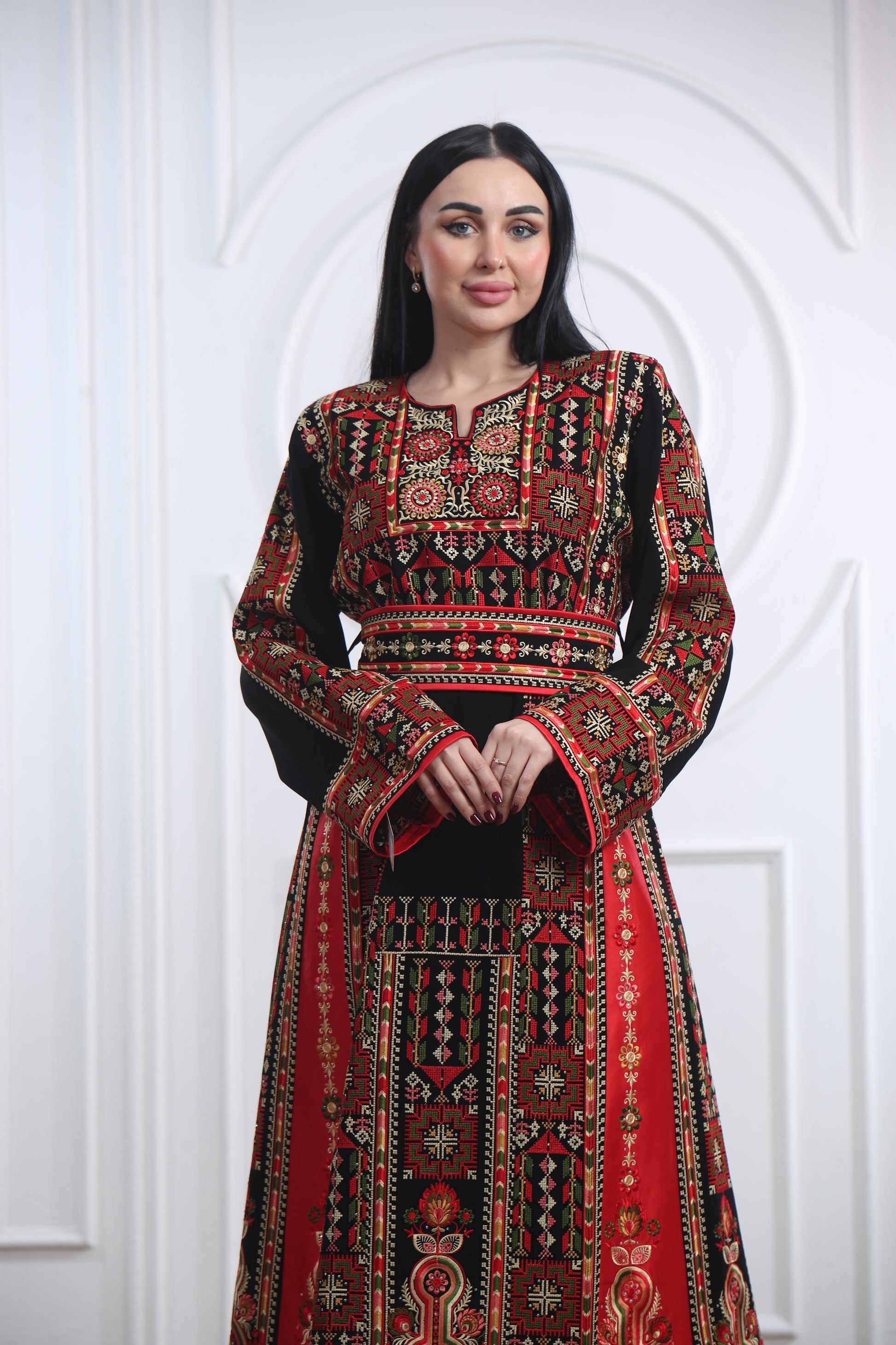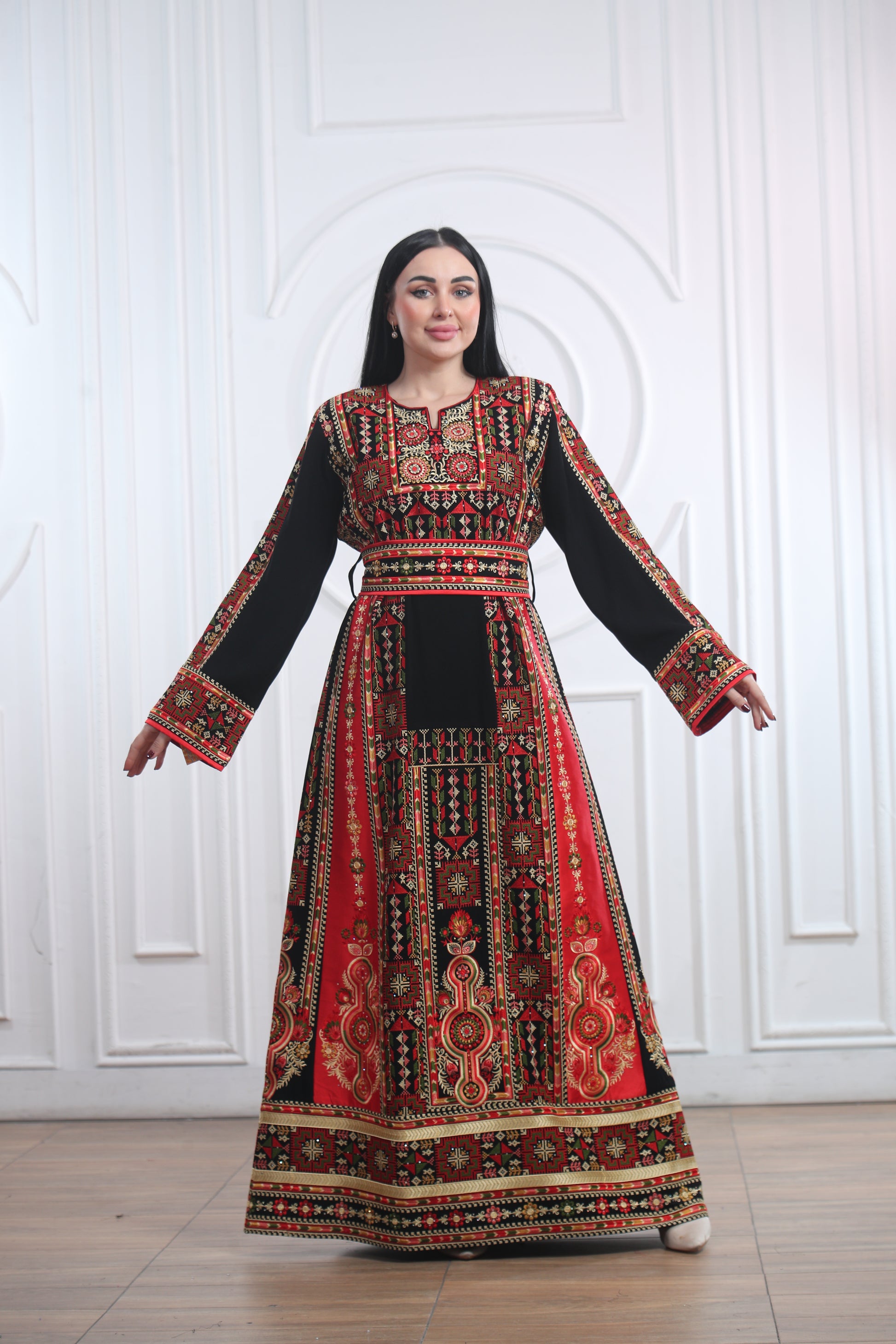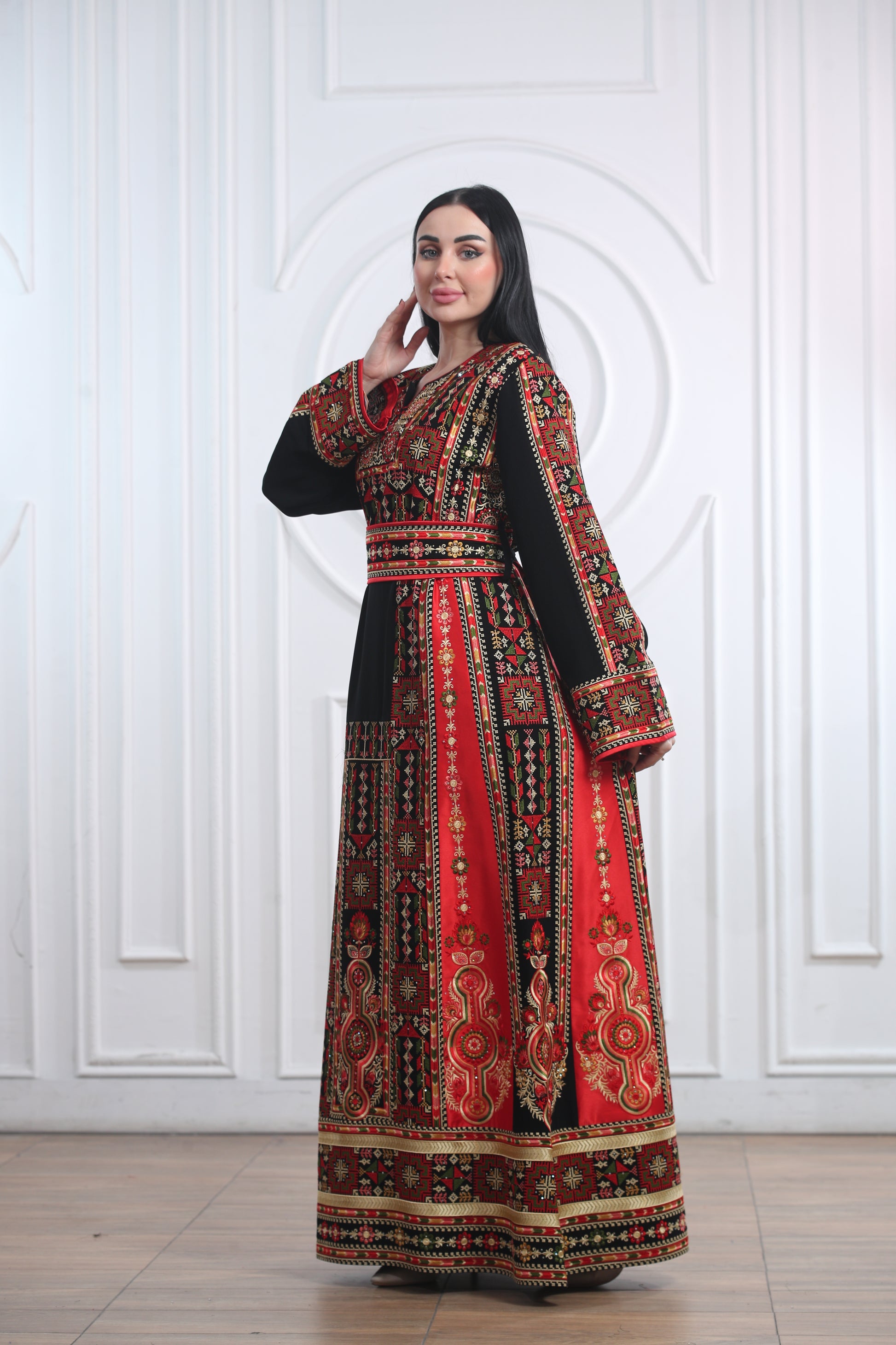 - Traditional Ramallah-style embroidery on front, sleeves, and hem