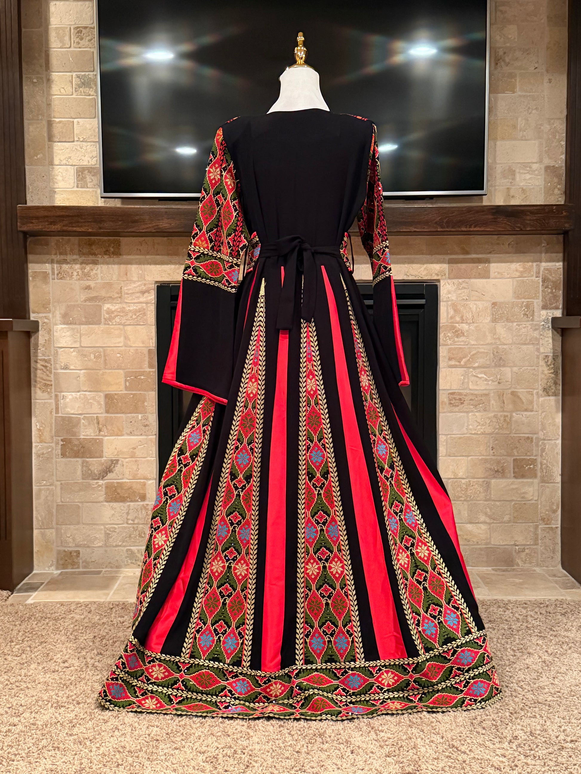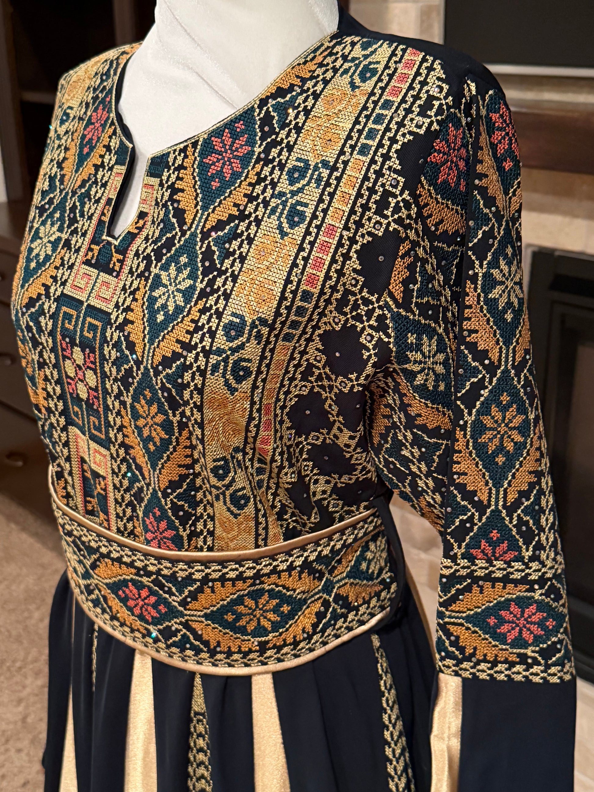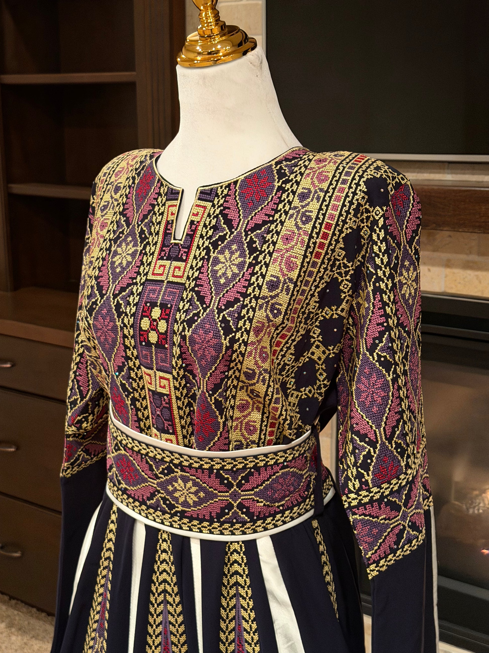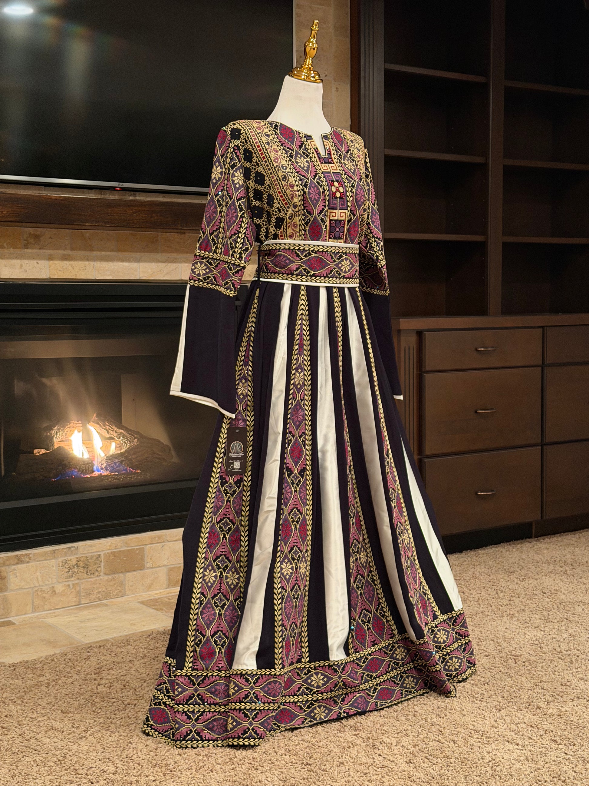 Al Sharkasi Thobe exudes timeless sophistication with its lustrous satin finish and detailed embroidery. The flowing silhouette and structured waist create a graceful balance of elegance and strength, making it ideal for special occasions. A modern interpretation of classic tradition, this piece radiates refined luxury.