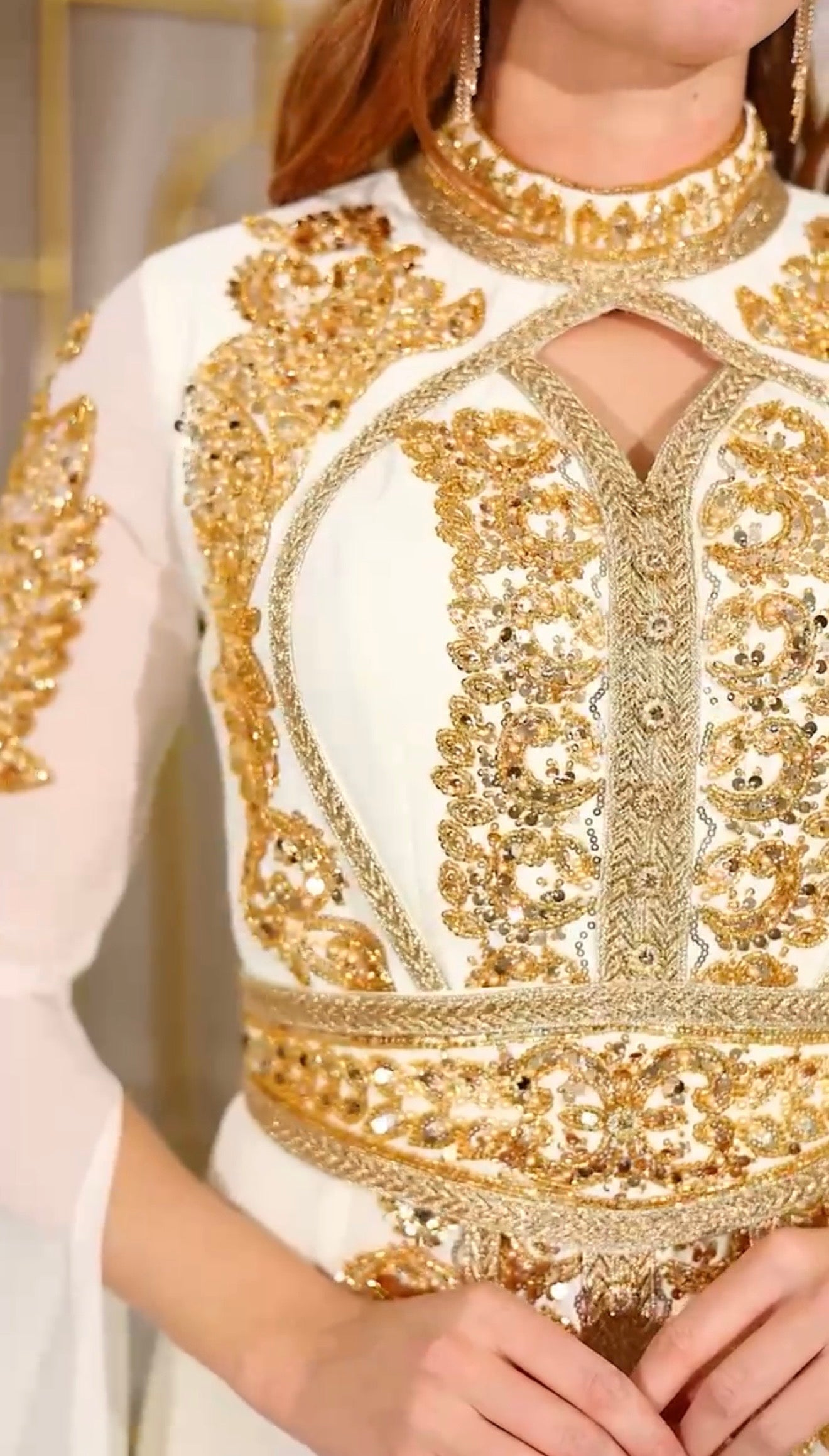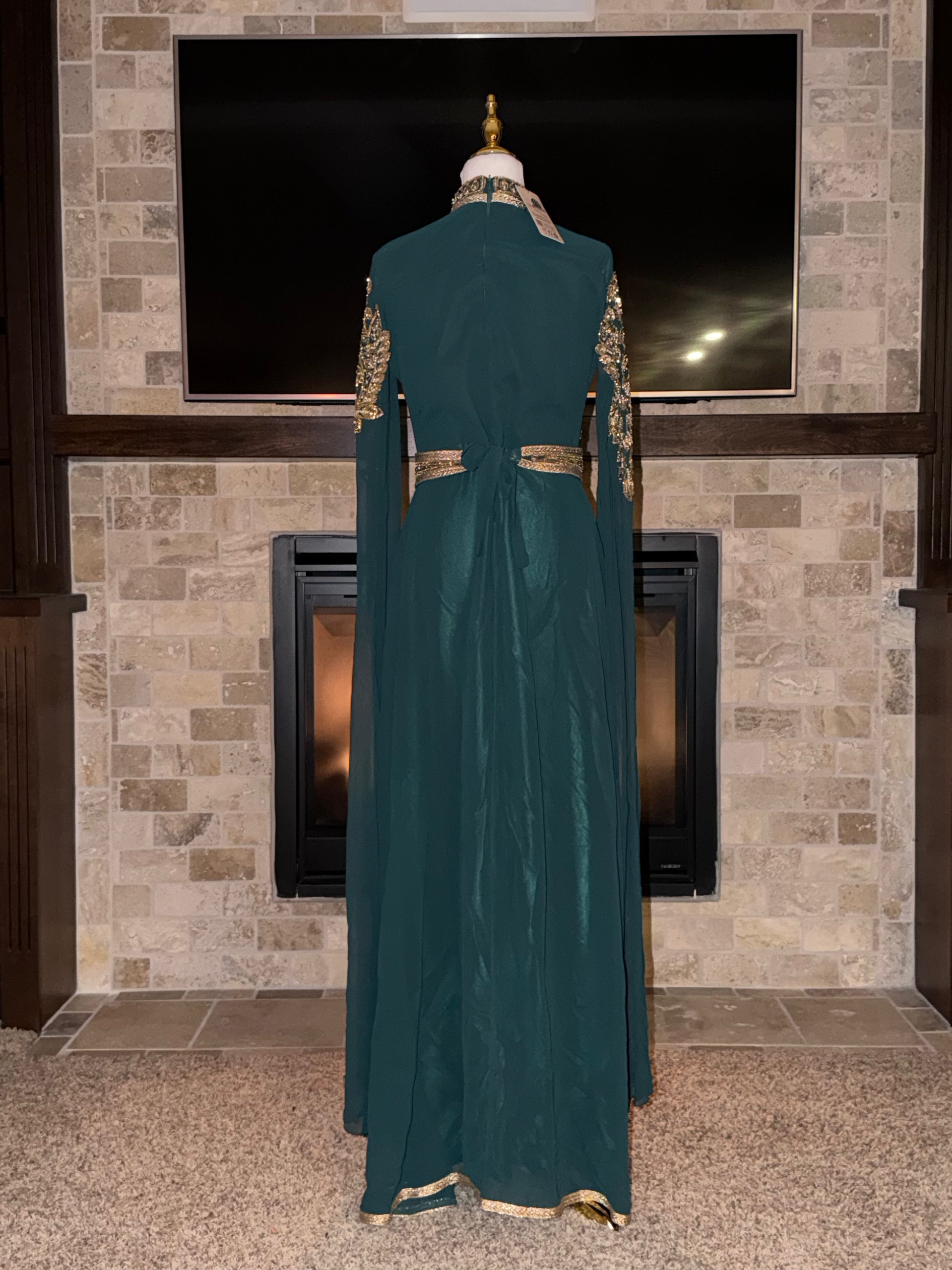 The Timeless Royalty Kaftan is a graceful and elegant piece made with soft, flowing fabric. It features intricate gold detailing along the front and sleeves, adding a luxurious and regal touch. Perfect for special occasions, weddings, or evening events.